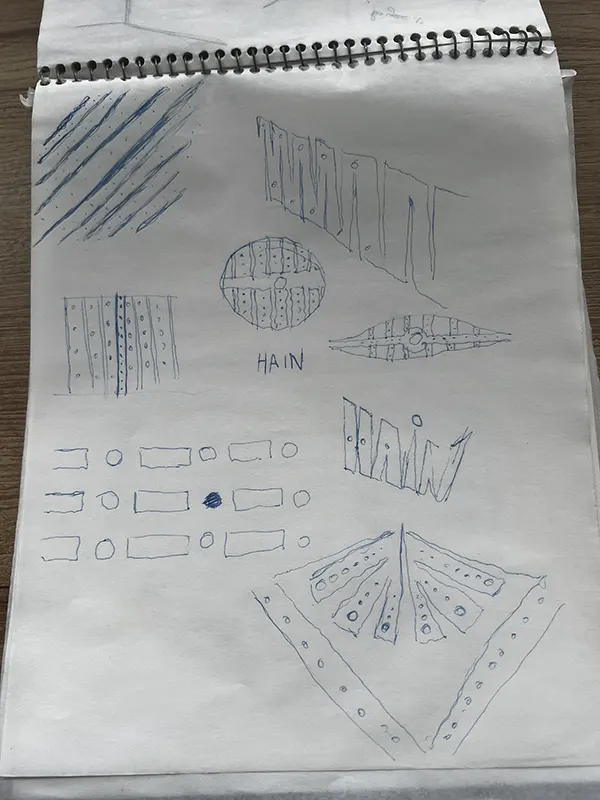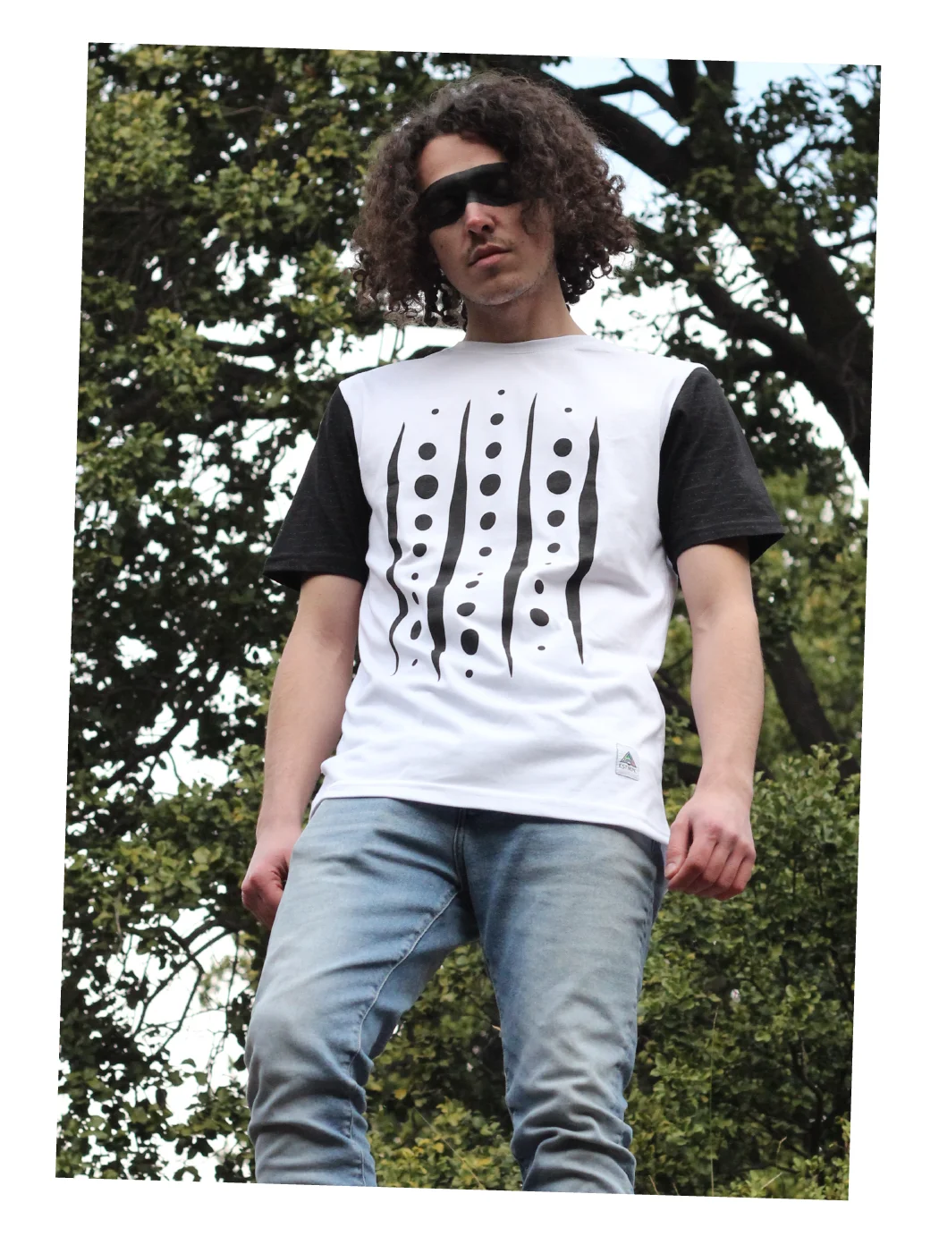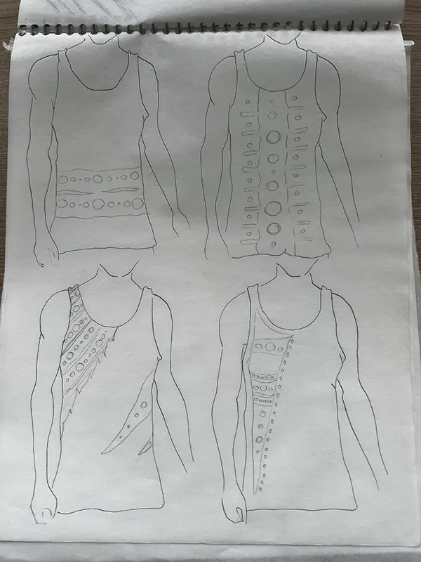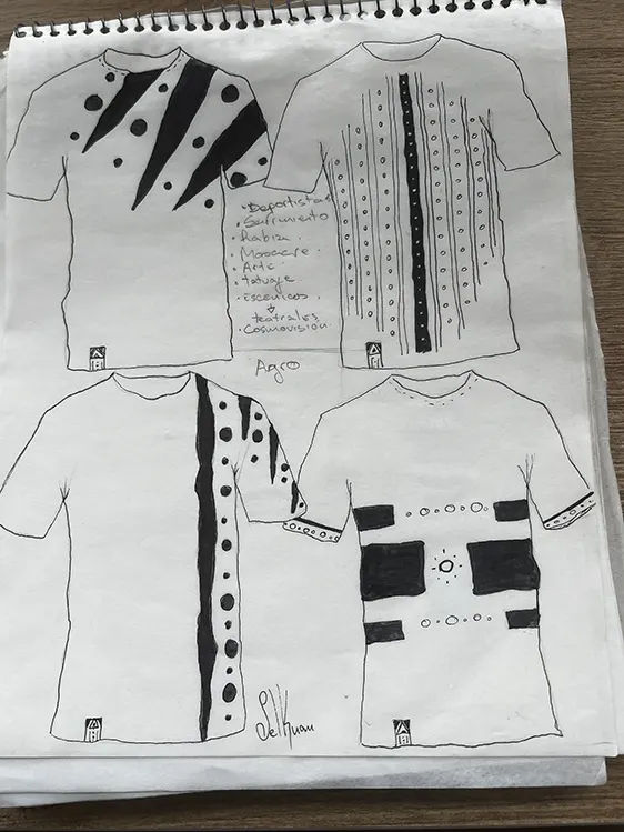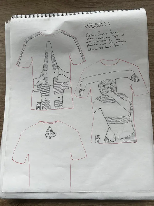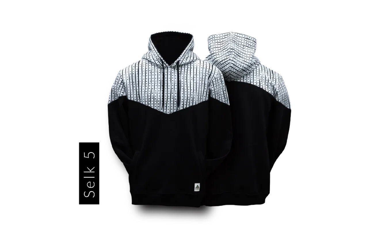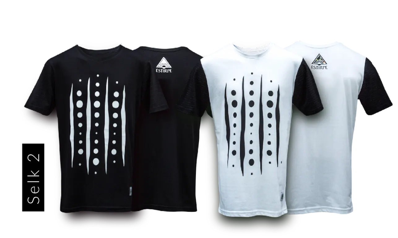 La característica de la serie de ropa Selknam es la gestualidad del trazo que compone los diseños. Se usa un trazo con carácter sucio e irregular. Este trazo busca reflejar la naturalidad. También refleja el sufrimiento que se le propinó a este pueblo tras el etnocidio impartido por los colonos.